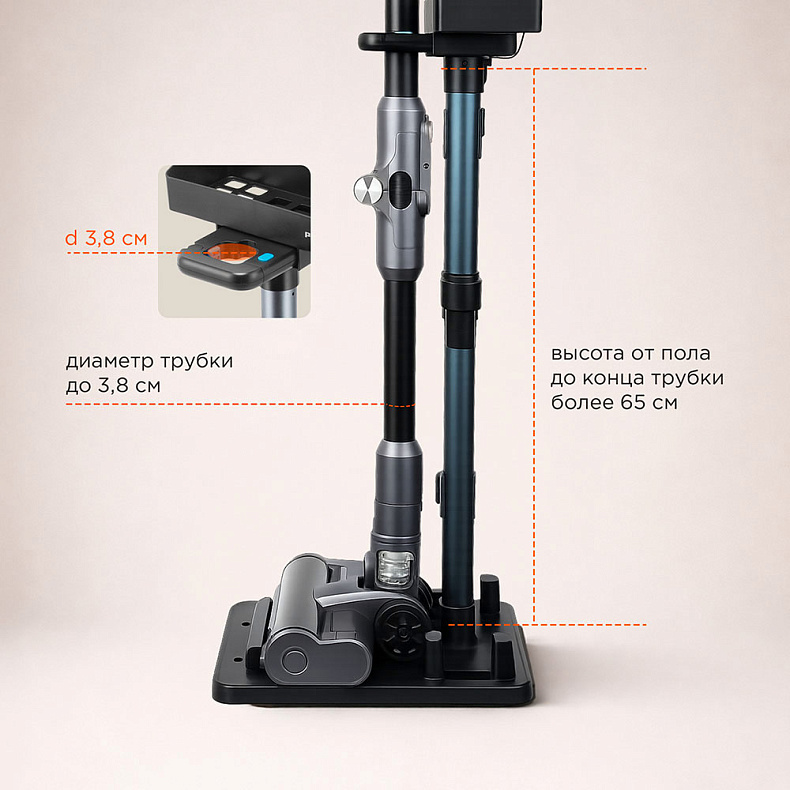 Подставка совместима со многими моделями вертикальных пылесосов РЕДМОНД и другими устройствами схожей конструкции. Перед покупкой проверьте параметры вашего прибора: