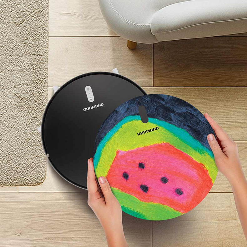 Съемная крышка от REDMOND (механизм запатентован) для RV-R630S превратит привычный робот-пылесос в оригинальный арт-объект. Верхнюю панель легко заменить, поэтому с внешним видом прибора можно экспериментировать.