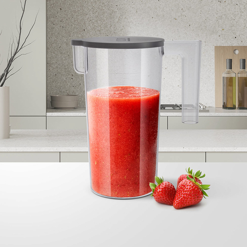 Приготовьте смузи из овощей или молочный коктейль с добавлением фруктов. Стакан объемом 1000 мл укомплектован крышкой, чтобы вы могли взять любимый напиток с собой.