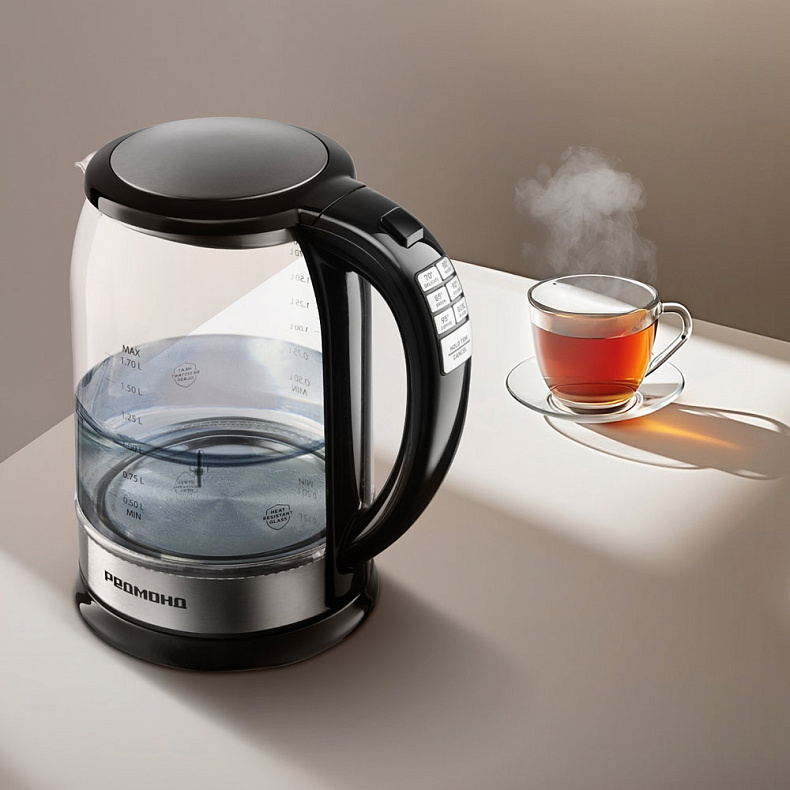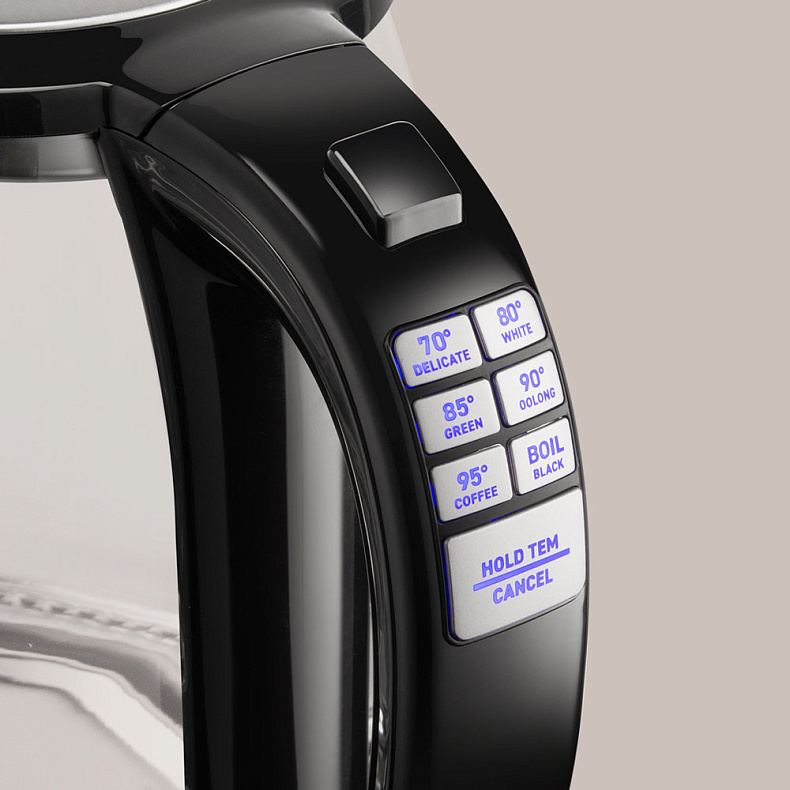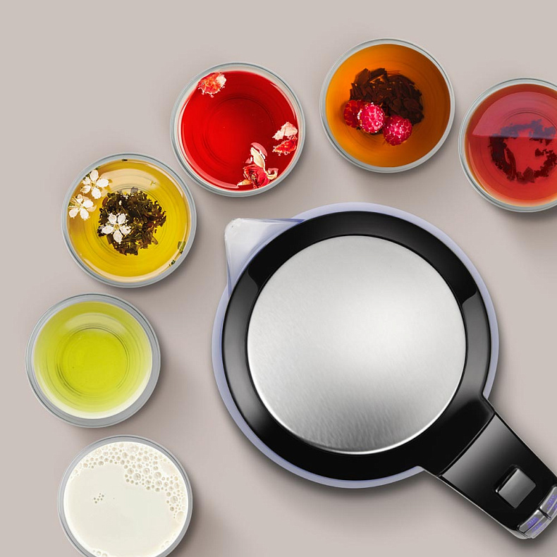 Чайник позволяет настроить необходимую температуру в диапазоне от 70 до 95 °C, а также выбрать режим кипячения. Это особенно полезно для заваривания чая и приготовления любимых авторских напитков.