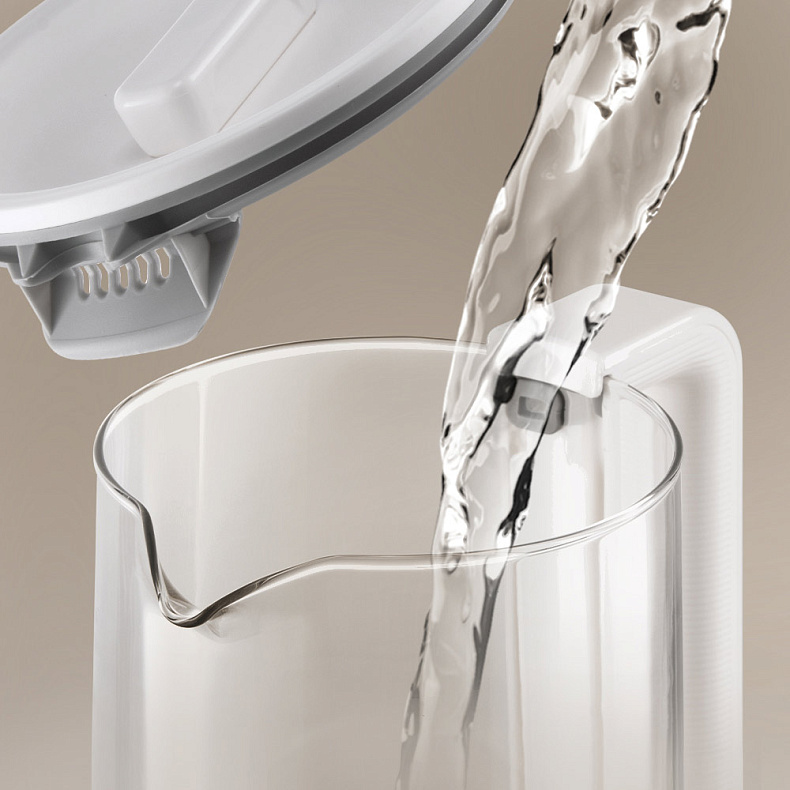 Чайник удобно наполнять благодаря съемной крышке. Она не будет мешать, когда придет время помыть колбу. Съемная крышка отличается большей надежностью по сравнению с откидной и не сломается при частом открытии.