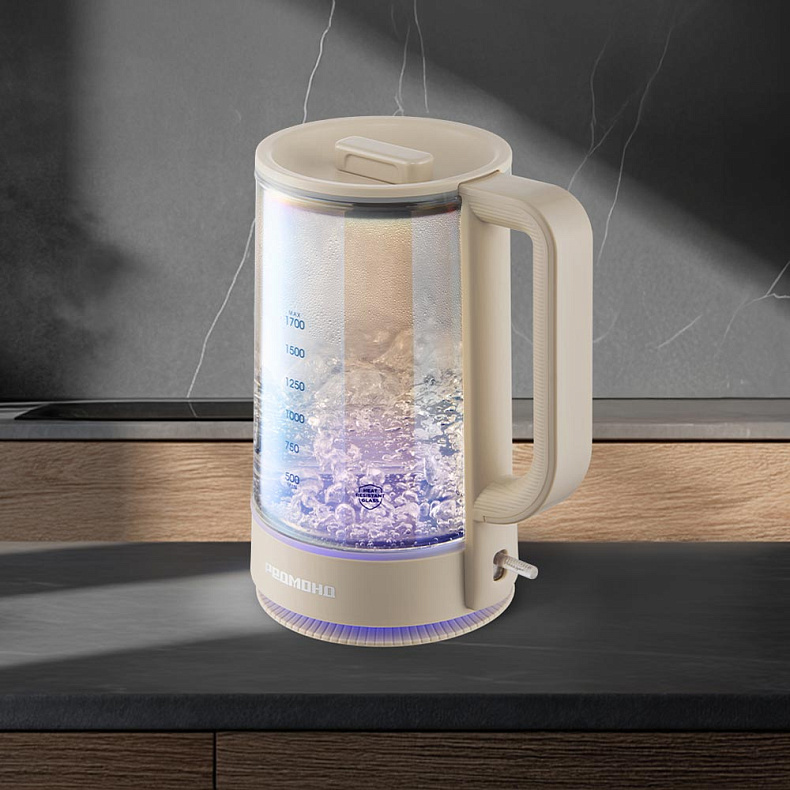Уникальная колба с тонированным стеклом придает чайнику особую элегантность и визуальную легкость. Контурная подсветка с парящим эффектом создает мягкое свечение, делая процесс кипячения воды по-настоящему завораживающим. Подсветка подставки и основания колбы подчеркивает легкость и утонченность чайника. Такой дизайн идеально впишется в современный интерьер и подчеркнет вкус владельца.