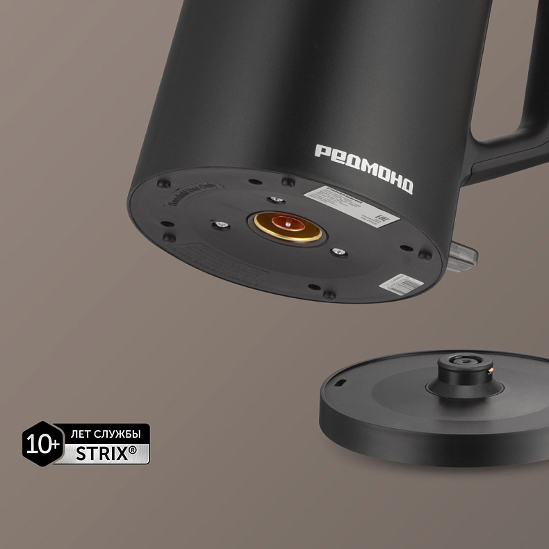 Контактная группа от британской компании Strix® обеспечивает максимально безопасное использование чайника и длительный срок службы. Контроллер расположен в центре подставки, за счет чего прибор можно поворачивать на 360°.