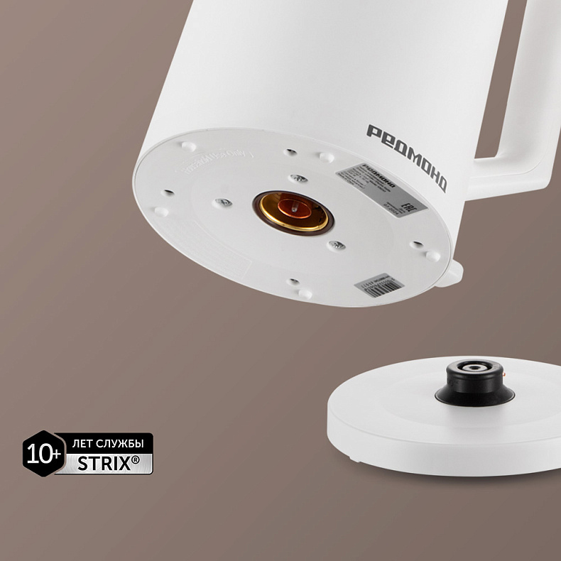 Контактная группа от британской компании Strix® обеспечивает максимально безопасное использование чайника и длительный срок службы. Контроллер расположен в центре подставки, за счет чего прибор можно поворачивать на 360°.