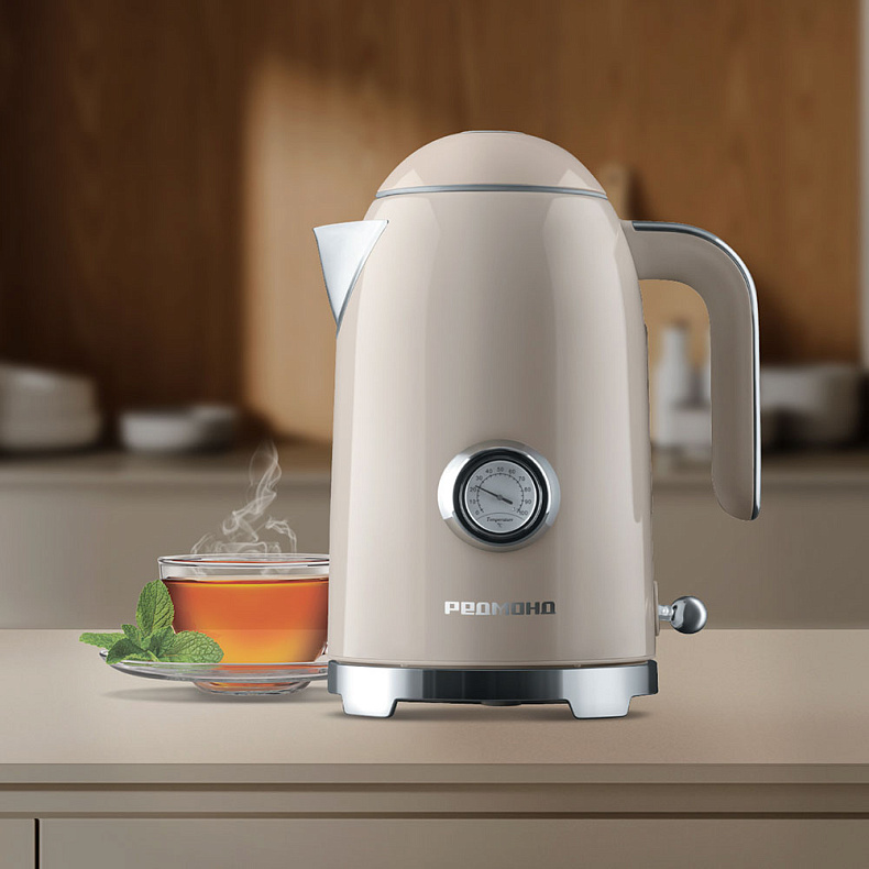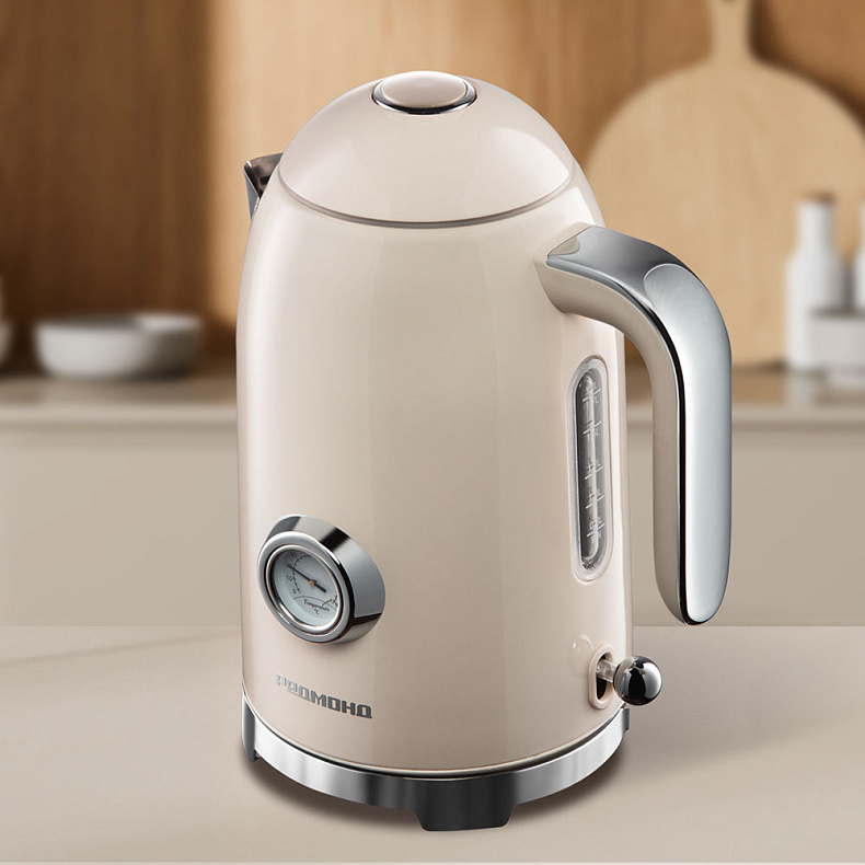 Чайник РЕДМОНД KM247 станет изюминкой кухонного интерьера благодаря утонченному винтажному дизайну. Объема 1,7 литра хватит, чтобы приготовить сразу 6–7 чашек ароматного чая для близких. Встроенный термометр обеспечит вам точный контроль за температурой воды, а съемная крышка упростит уход за чайником.