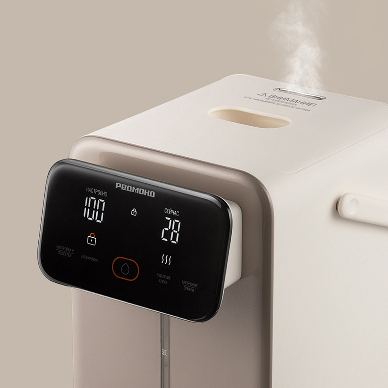 Термопот оснащен блокировкой подачи воды от детей, а также двумя уровнями защиты для безопасной и эффективной работы: