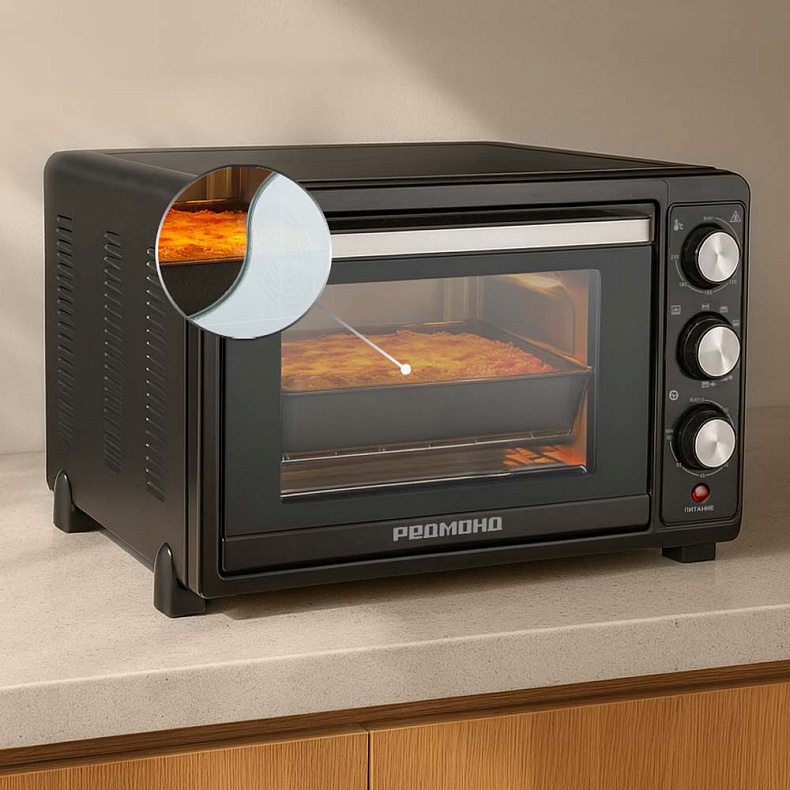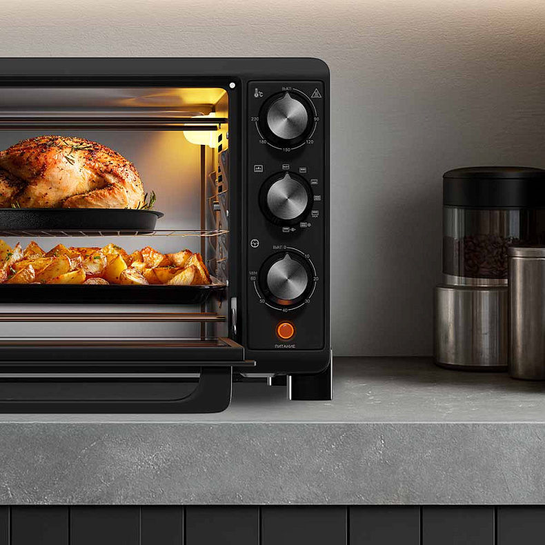 Духовой шкаф объемом 30 литров — оптимален для любой кухни. Шкаф компактный снаружи, вместительный внутри. Вы можете готовить сразу несколько блюд для всей семьи или гостей за один раз. Это экономит время и делает процесс готовки удобнее.