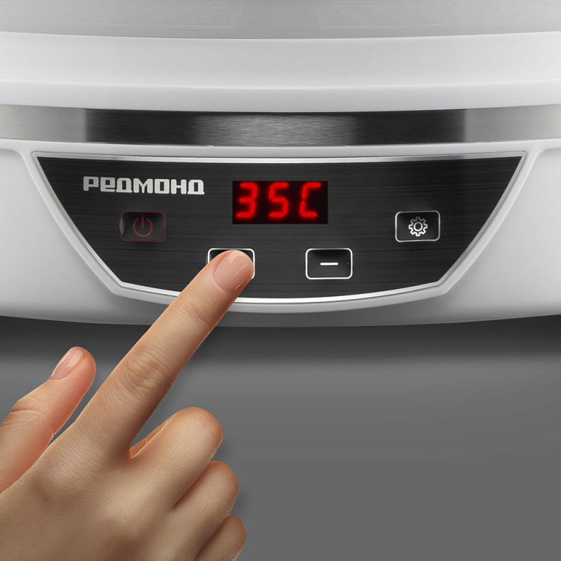 Установите начало сушки на нужное вам время в диапазоне от 30 минут до 72 часов с шагом в полчаса. А в инструкции вы найдете рекомендации по времени и температуре сушки конкретных продуктов.