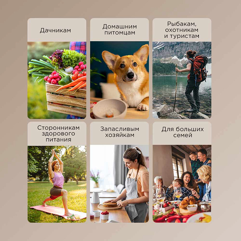 Сушилка пригодится в самых разных ситуациях. Сторонники здорового питания смогут готовить натуральные снеки без сахара и консервантов. Дачники легко переработают урожай фруктов и ягод. Рыбаки, охотники и туристы сделают из мяса и рыбы перекус, запасливые хозяйки смогут сделать полезные заготовки для всей семьи.