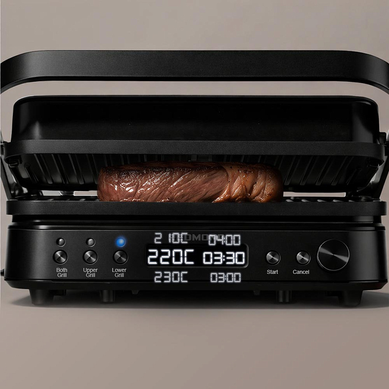 Используйте панели гриля с независимой регулировкой температуры для приготовления разных блюд. В режиме барбекю (раскрыв гриль на 180 градусов) вы получаете две отдельные зоны с разной температурой, что позволяет одновременно обжаривать говядину при 230 °C и нежные томаты при 180 °C. Встроенный таймер обеспечивает контроль времени для каждого блюда, гарантируя идеальный результат.