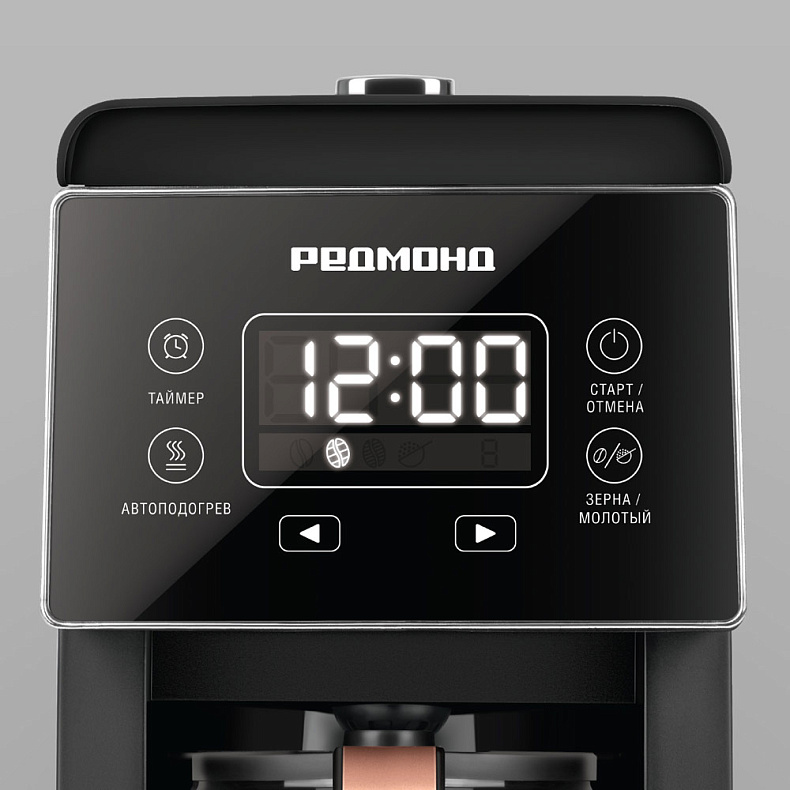 Кофеварка оснащена сенсорной панелью с интуитивно понятными значками. На экране также отображается текущее время, чтобы вы могли планировать утро и точно знать, сколько минут у вас есть на чашку горячего напитка.
