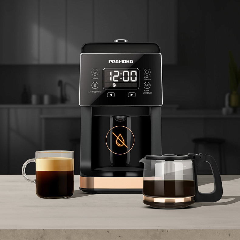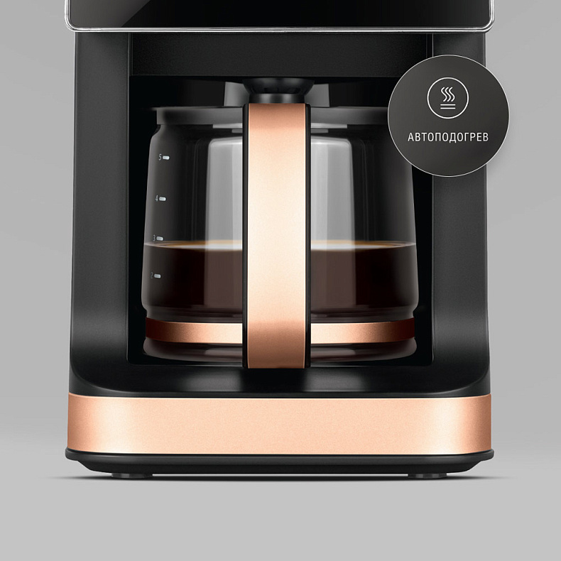 Как только вы уберете кувшин с подставки, кофеварка автоматически прекратит подачу напитка. Это защищает поверхность прибора от лишних капель и упрощает уборку.