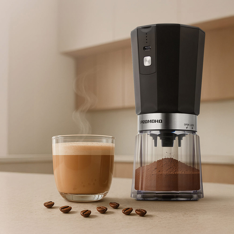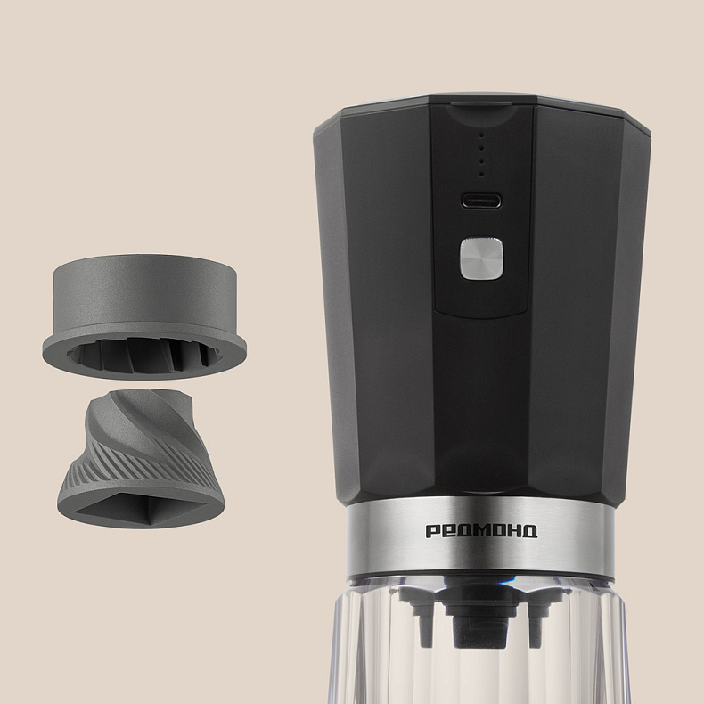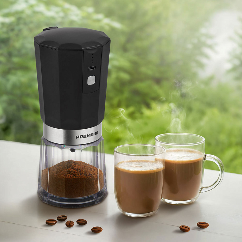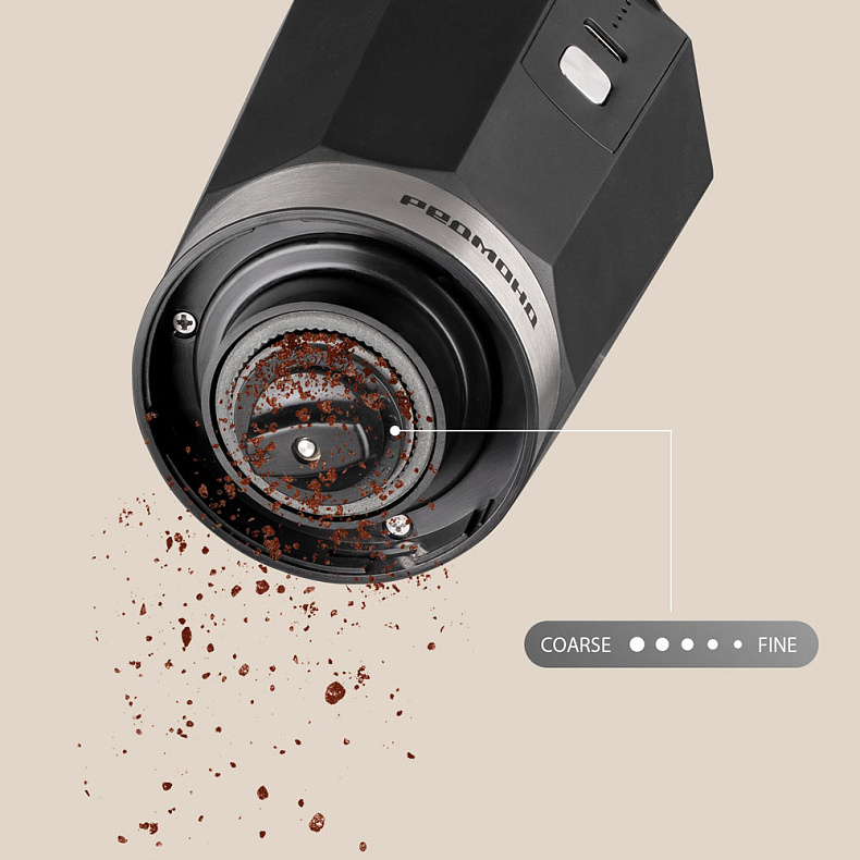 Кофемолка работает от аккумулятора, вы можете установить ее в любом месте вне зависимости от наличия розетки. Подойдет тем, кто ценит мобильность и комфорт.