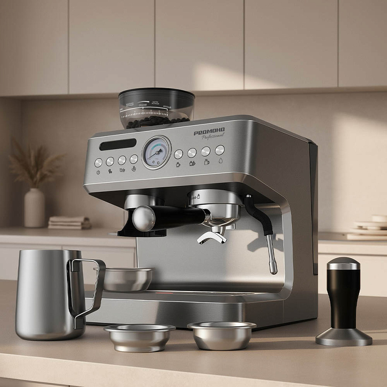 Кофейная станция CM742 отличается элегантным дизайном и идеально вписывается в современную кухню. Цельнометаллический корпус подчеркивает премиальный характер и надежность исполнения. Аксессуары бариста из нержавеющей стали приятны в использовании и рассчитаны на долгую службу. Это техника, которая радует и внешним видом, и качеством каждый день.
