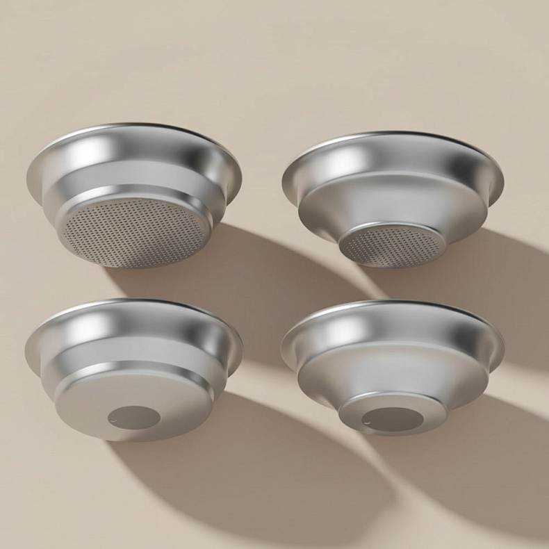 Стандартный фильтр идеально подойдет опытным бариста: тем, кто хочет контролировать каждый этап и добиваться идеального результата. А для новичков есть фильтры с двойным дном, обеспечивающие стабильный вкус и плотную крема без усилий. Благодаря конструкции создается более стабильное и равномерное давление по всей поверхности кофе. Первое дно пропускает воду через кофейную таблетку, а второе с одним отверстием создает стабильное давление, действуя как «контрольный клапан».