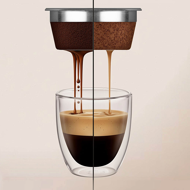 С функцией предварительного смачивания молотый кофе заранее насыщается горячей водой, поэтому под давлением она проходит равномерно. Экстракция становится стабильнее, что позволяет раскрыть максимум вкуса и аромата. Без предсмачивания вода под давлением подается на сухой кофе и проходит через него неравномерно: одни участки пропитываются быстрее, другие — медленнее. Вкус и аромат раскрываются слабее.