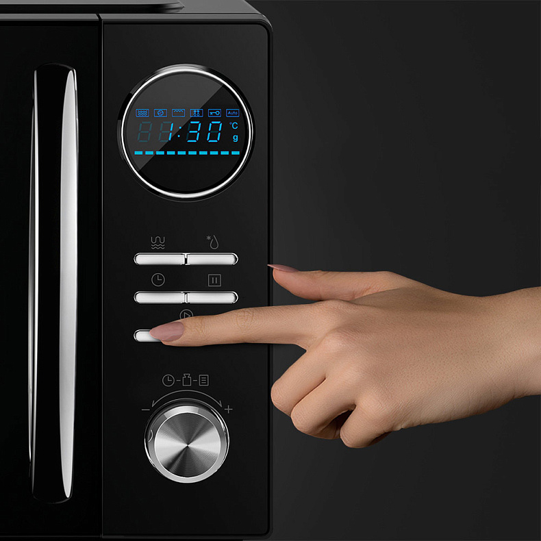 Если у вас мало времени, разогреть обед или ужин можно с помощью всего одной кнопки. Одного нажатия достаточно, чтобы запустить разогрев на 30 секунд. Для увеличения продолжительности процесса разогрева просто нажмите кнопку еще раз.