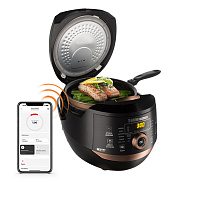 Мультикухня REDMOND RMK-232 – кухонный прибор нового поколения, представляющий собой настоящую программируемую плиту! С помощью RMK-232 вы можете привычным образом готовить в чаше или поднять нагревательный элемент и жарить, варить, тушить в любой* другой жаропрочной посуде или даже вскипятить воду для чая. Благодаря мультикухне и аэрогрилю ваши возможности практически безграничны – пока на сковороде жарятся котлеты для обеда, с помощью аэрогриля вы сможете испечь аппетитные кексы на десерт!