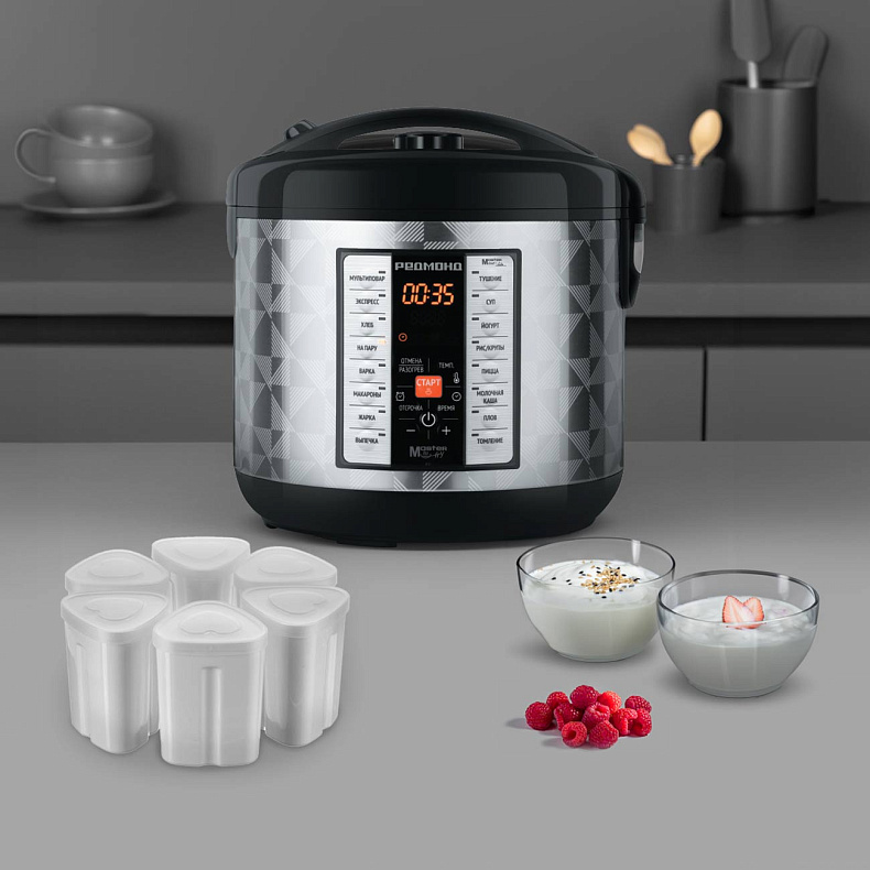 В комплекте к RMK-M271 идут 6 баночек для йогурта. Вы можете готовить это блюдо как в чаше, так и сразу в специальных емкостях — готовые продукты будет удобно убрать в холодильник.
