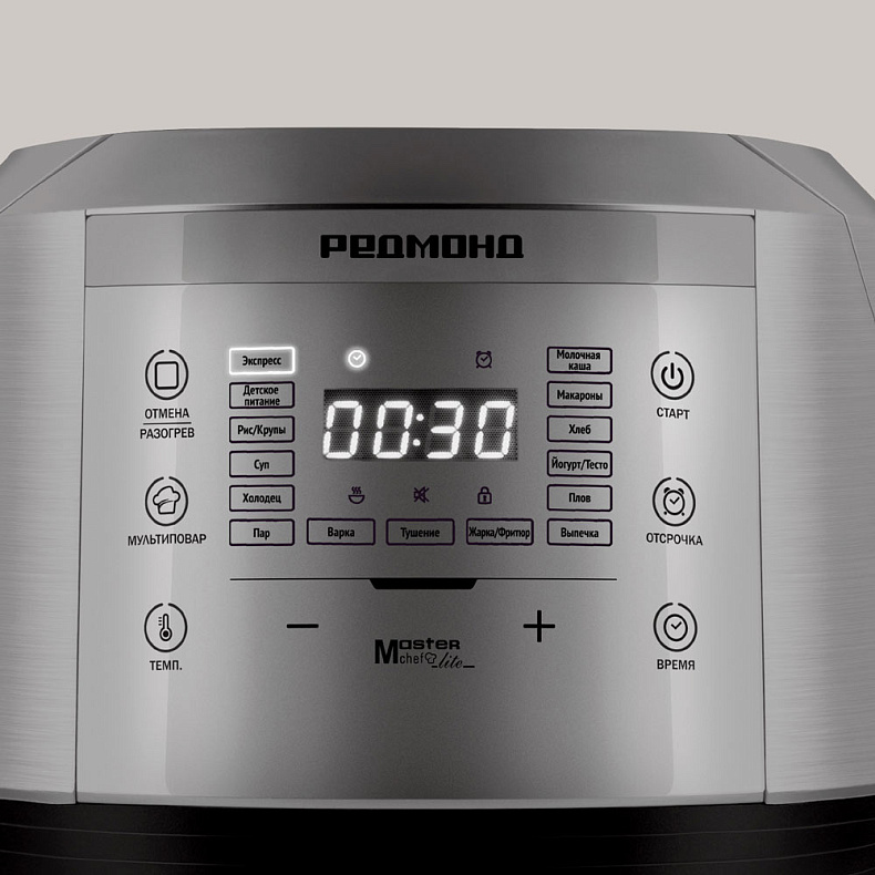 МУЛЬТИПОВАР — удобный режим с ручной настройкой времени и температуры. А возможность изменять настройки прямо в процессе приготовления позволит функция МАСТЕРШЕФ ЛАЙТ.