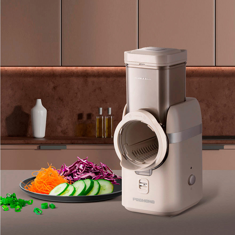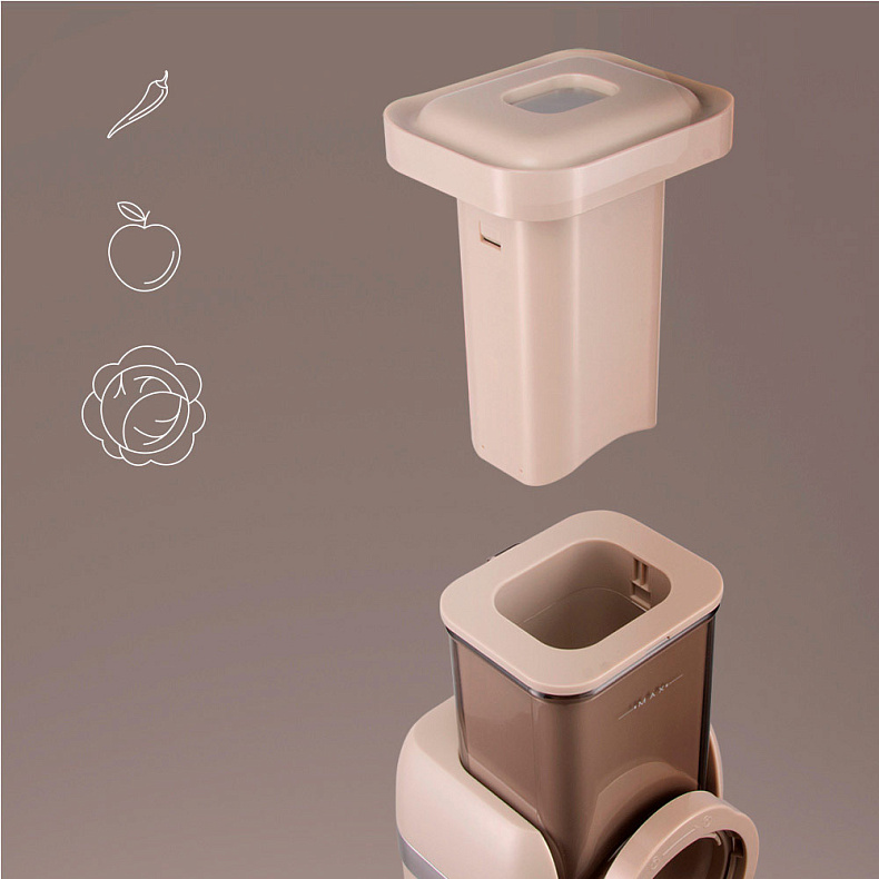 Современный и лаконичный дизайн делают мультирезку украшением любой кухни. Бежевый оттенок придает прибору утонченный вид, он гармонично сочетается с различными цветами и материалами.