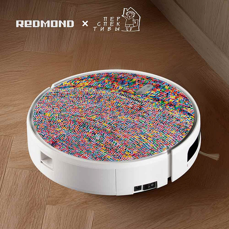 В рамках проекта REDMOND и благотворительной организации «Перспективы» художник Василий Оленев воплотил свой графический язык в прикладной форме. Его композиции строятся на ритме, симметрии и цвете — каждая деталь подчинена внутренней логике. Робот-пылесос с принтом «Мозаика» станет арт-объектом в вашем доме.