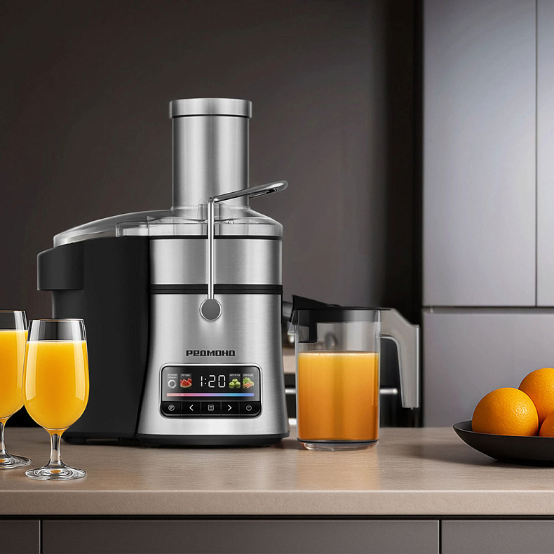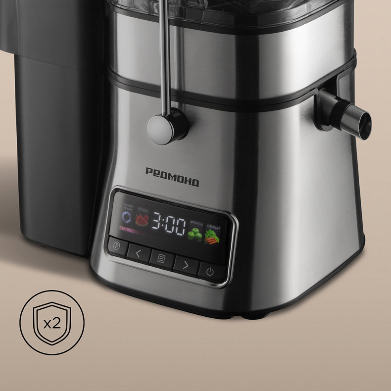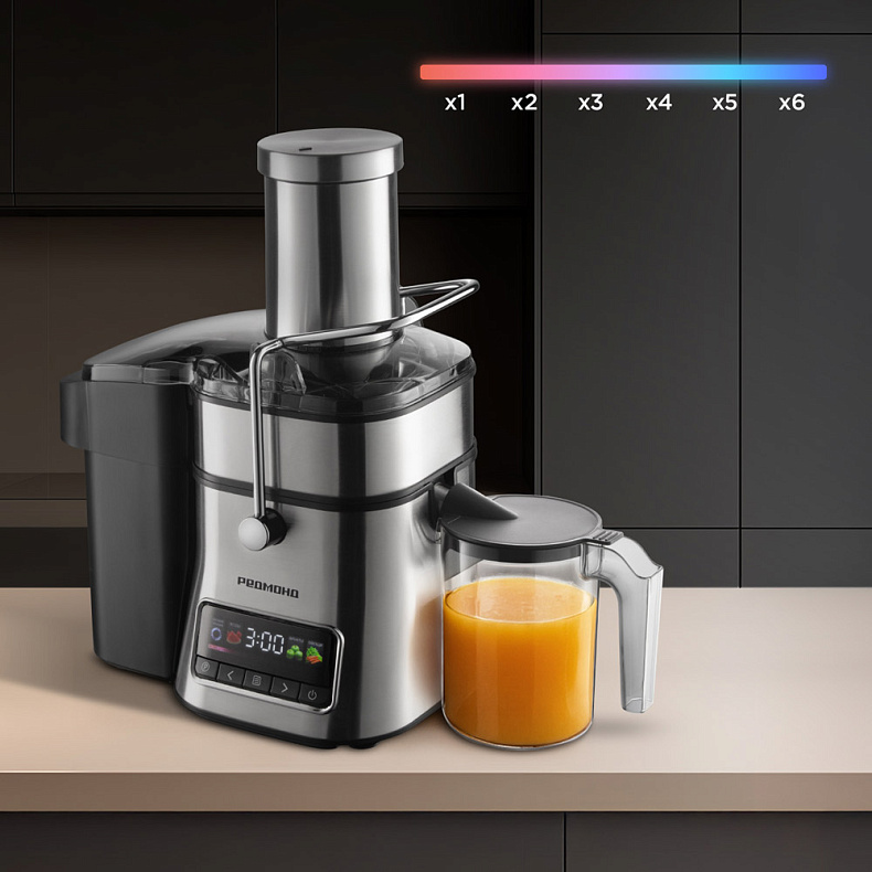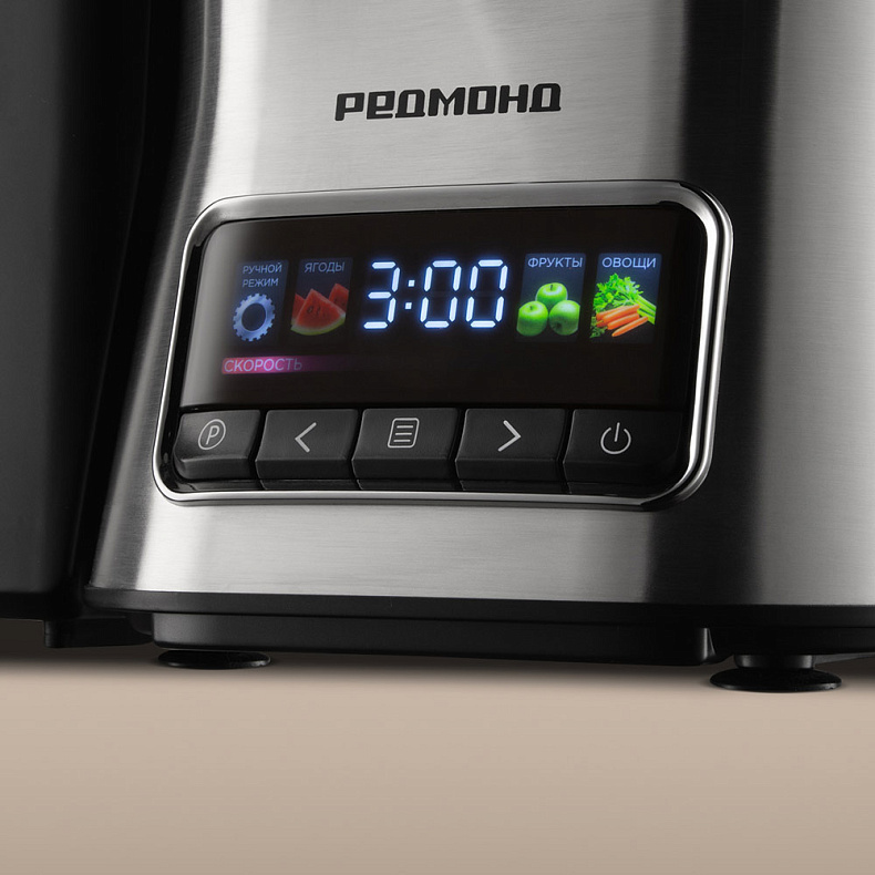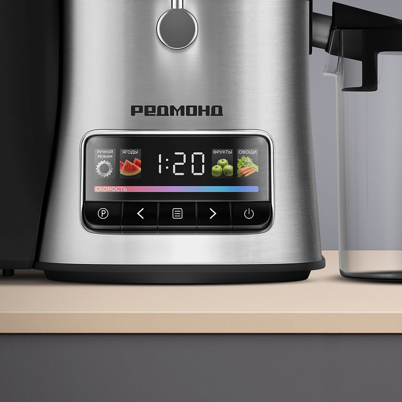 Алгоритмы REDMOND J1404 автоматически подстраивают отжим под тип продукта. Сок из мягких ягод, плотных фруктов или твердых овощей получится одинаково насыщенным и вкусным. Выберите один из четырех режимов: