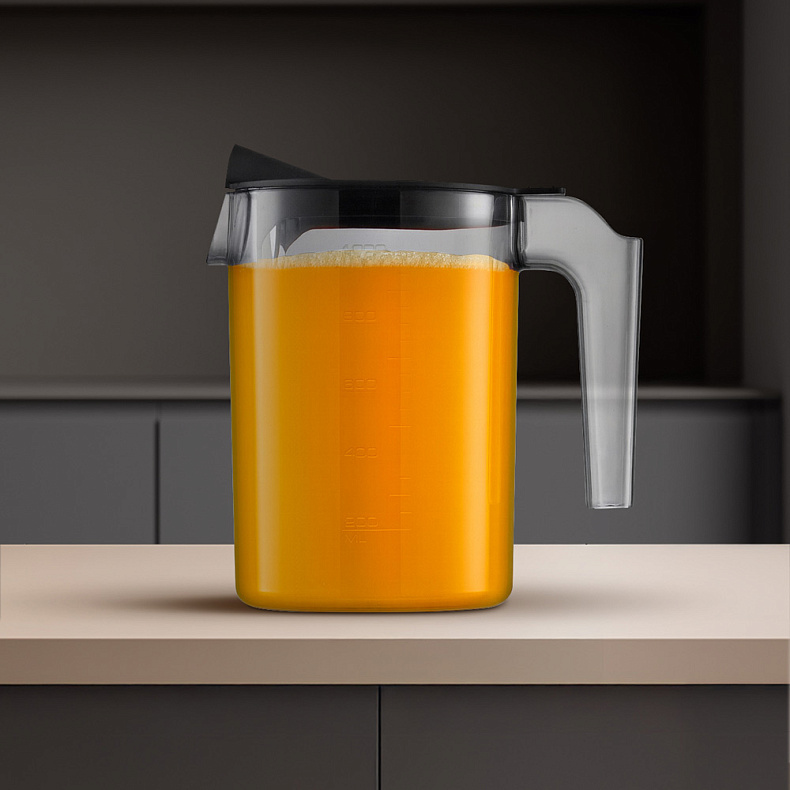Готовый сок подается в стильный кувшин с удобной крышкой — нет необходимости использовать другую посуду. Объема 1000 мл хватит для приготовления вкусных напитков на большую семью.