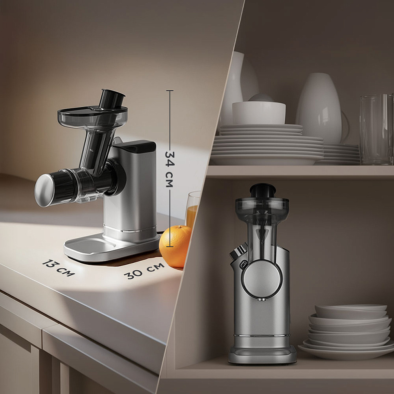 Соковыжималка идеально подойдет ценителям минимализма и тем, кто эффективно использует каждый квадратный метр. Она органично впишется в любой интерьер и займет немного места на любой кухне.