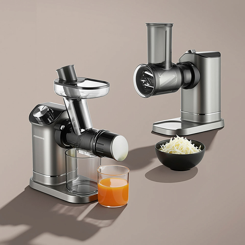 J1420-4 сочетает в себе функции соковыжималки и овощерезки. Она сэкономит не только пространство, но и время: приготовьте свежий фреш и быстро нарежьте фрукты или овощи для салатов и пюре. Все насадки легко устанавливаются, поэтому вы сможете готовить разнообразные блюда без лишних усилий.