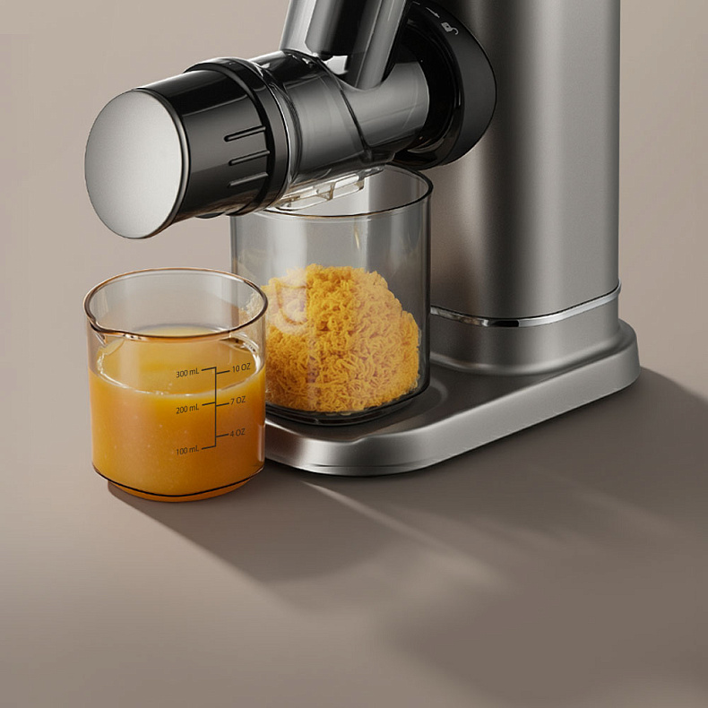 Благодаря системе холодного отжима сок не нагревается и не окисляется, поэтому сохраняет полезные ферменты, содержащиеся во фруктах и овощах. Свежевыжатый морковный или яблочный сок получается насыщенным и плотным, а зеленые коктейли сохраняют однородную структуру.