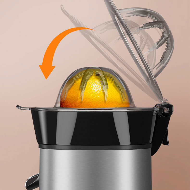 Продуманная конструкция крышки обеспечивает надежную фиксацию фрукта. Он не проворачивается при отжиме, поэтому процесс приготовления сока с J1427 будет максимально комфортным и быстрым.