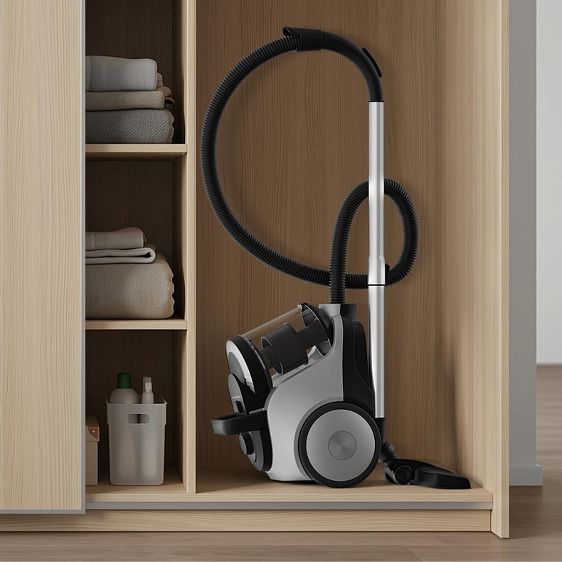 Пылесос занимает минимум места, поэтому его удобно хранить даже в небольших квартирах: в шкафу, кладовке или в углу комнаты — без ощущения загроможденности. Компактный размер не влияет на мощность, но делает использование и хранение максимально комфортными.