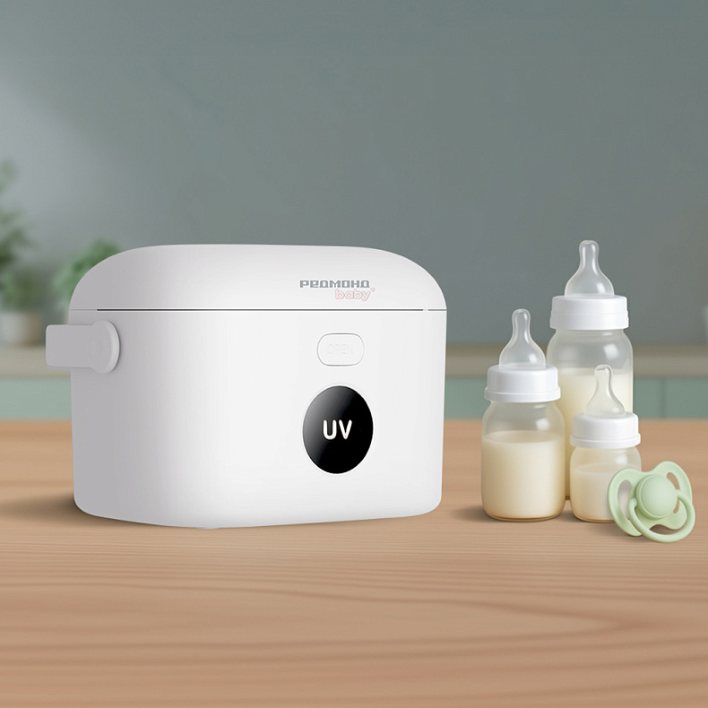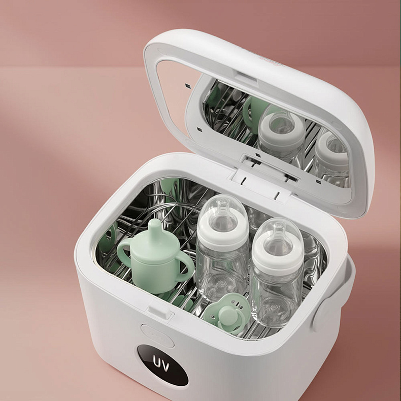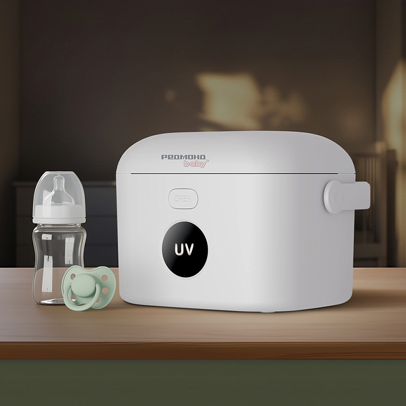 Ультрафиолетовая стерилизация не требует дополнительных емкостей и воды. Достаточно опустить бутылочки внутрь прибора и выставить время: