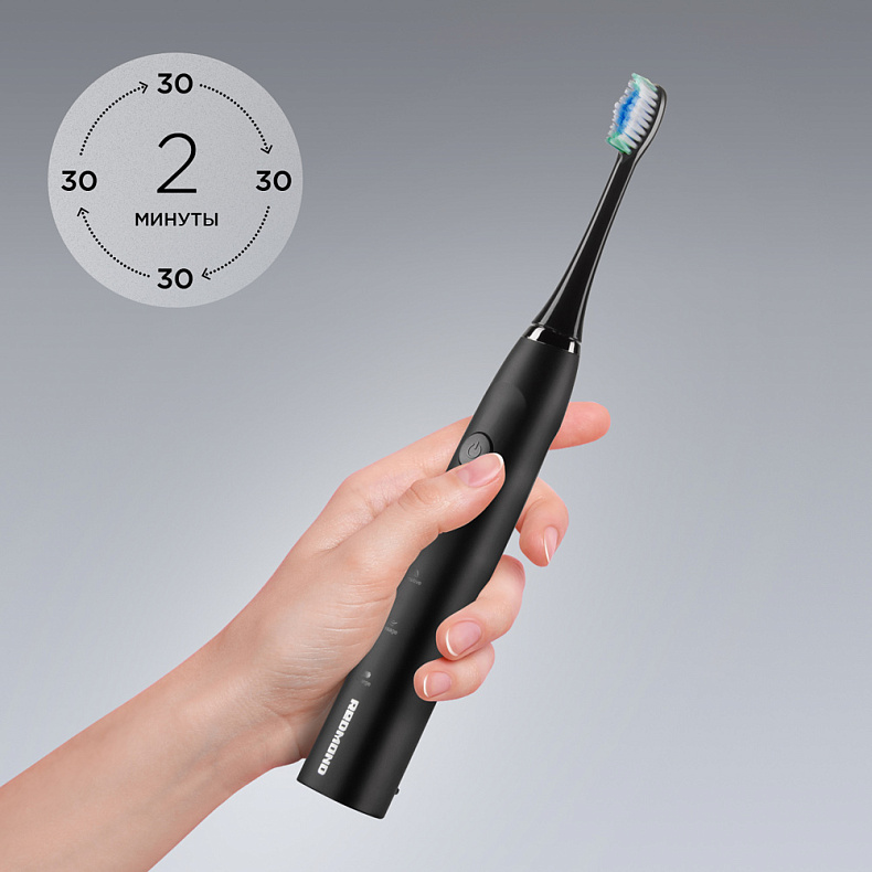 Стоматологи рекомендуют чистить зубы не менее 2 минут, поэтому мы оснастили щетку таймером. Каждые 30 секунд она делает паузу, напоминая сменить область чистки и не задерживаться на одном месте.