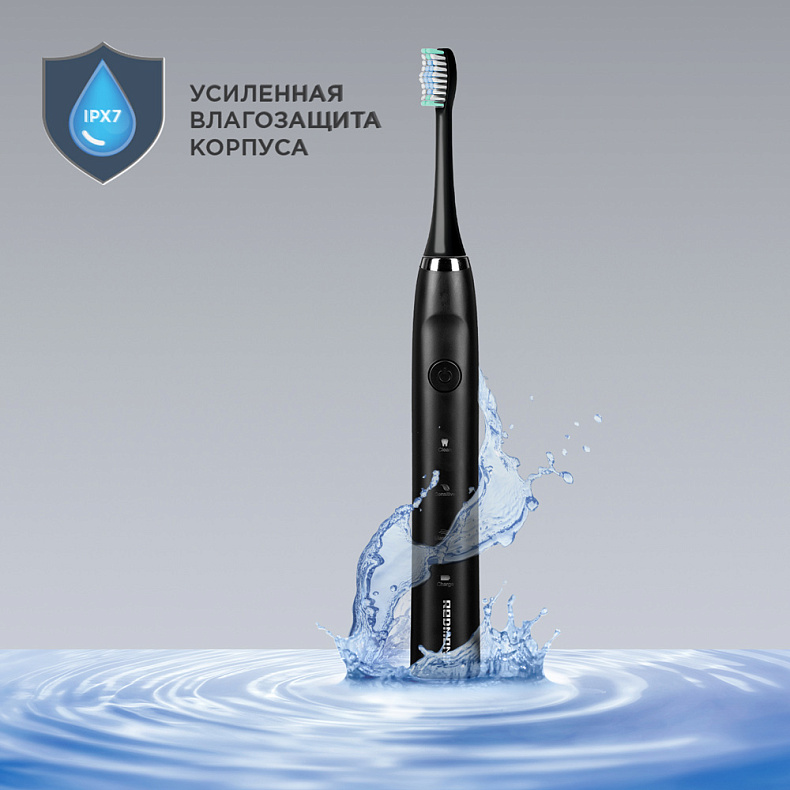 Влагозащита степени IPX7 позволяет чистить зубы прямо в душе и промывать щетку под водой, если вы испачкали ее пастой. Корпус щетки не боится даже недолгого погружения.