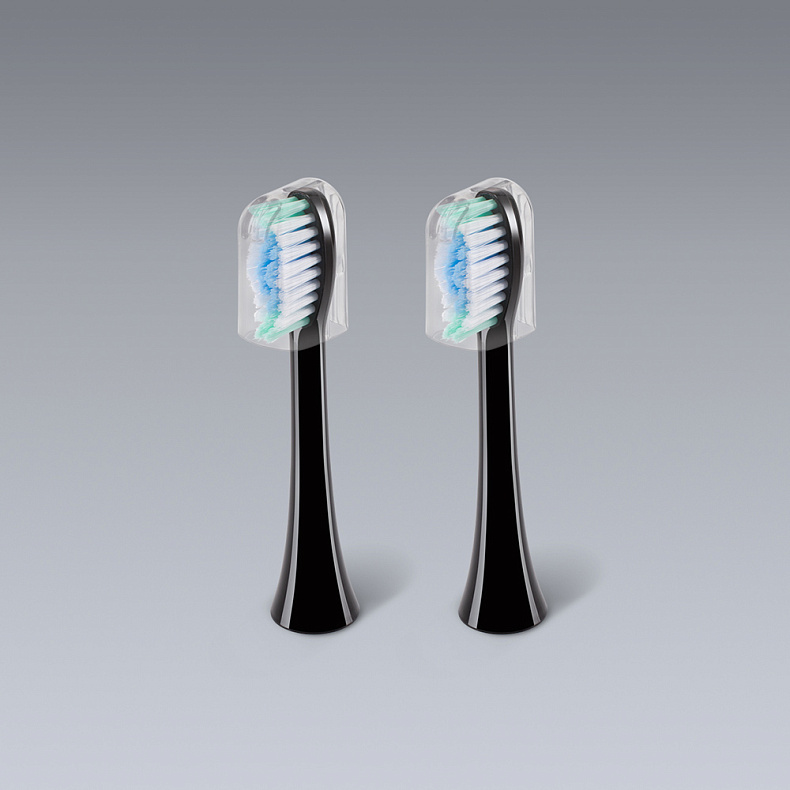 Насадки со щетинками от американской компании DuPont подойдут для чистки скученных зубов — они легко проникают в межзубные промежутки. От налета и остатков пищи не останется и следа.