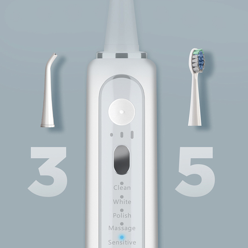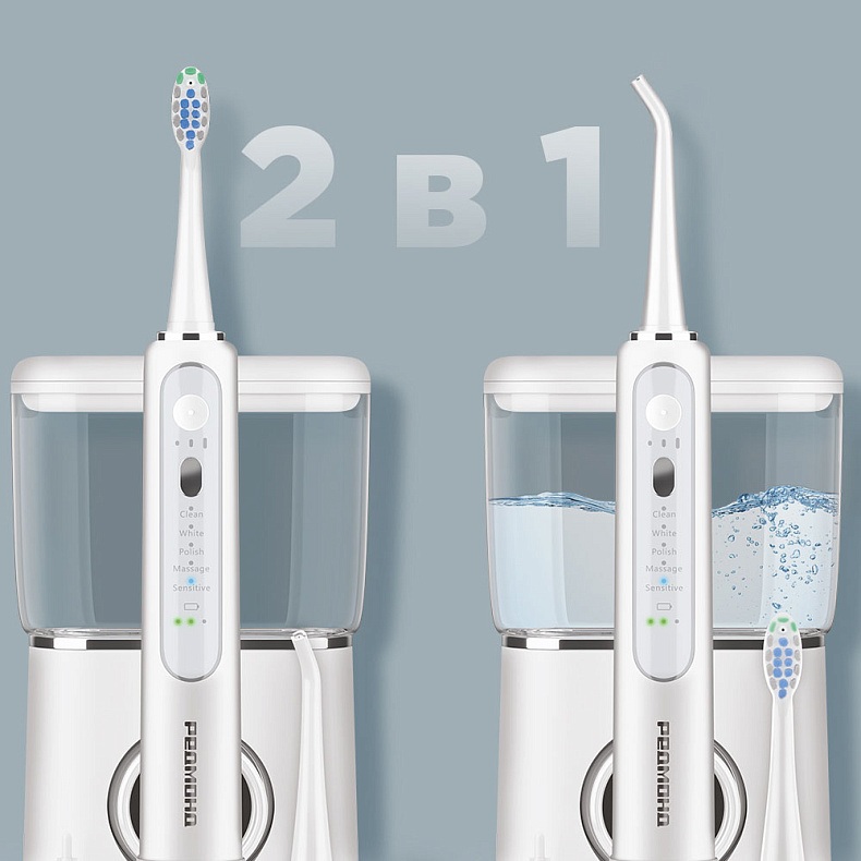 Режимы позволят адаптировать работу зубного центра под ваши особенности. 3 режима интенсивности для ирригатора и 5 режимов работы для щетки подходят для всесторонней заботы о вашей улыбке.
