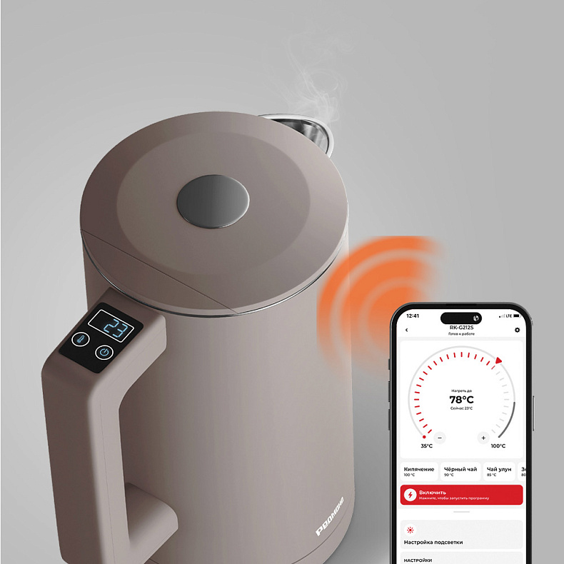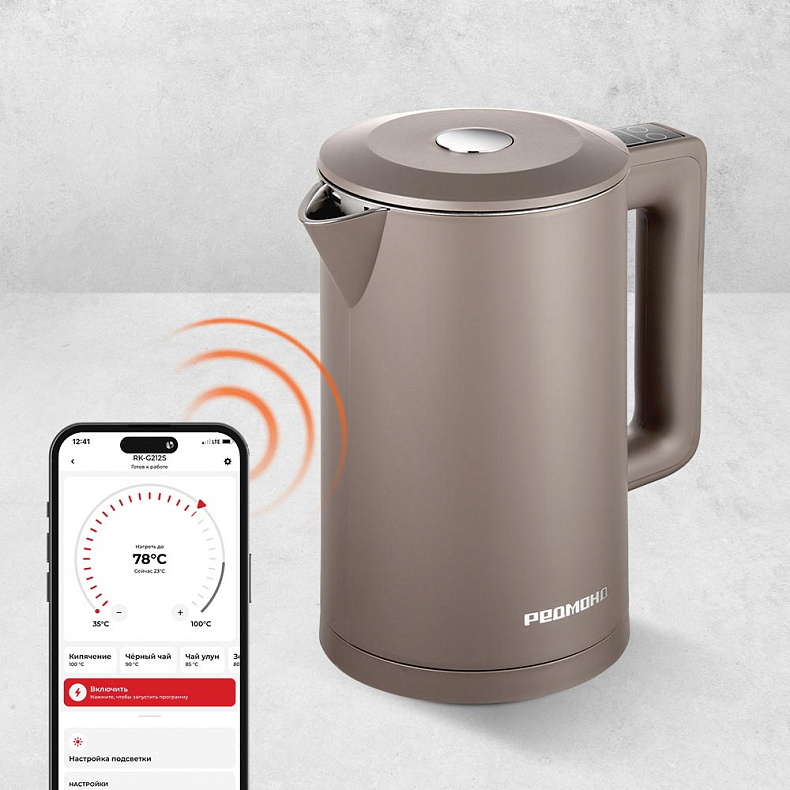 Установите на ваш гаджет (Android, iOS) приложение Ready for Sky REDMOND, чтобы получить доступ к расширенным возможностям дистанционного управления чайником по Wi-Fi: выбору температуры и т. д.