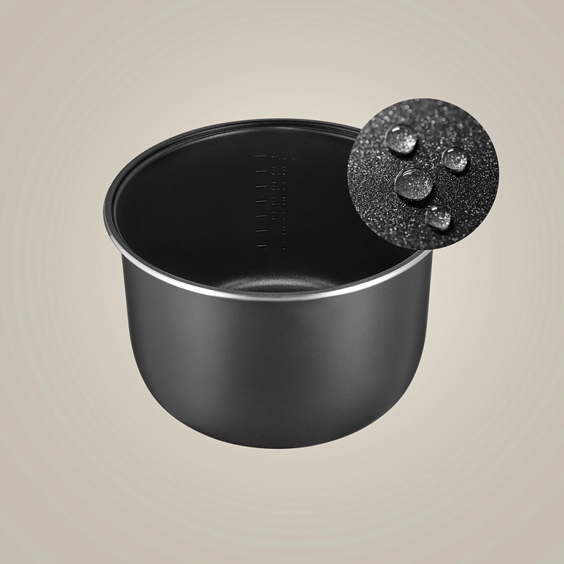 Многослойное покрытие от японской компании DAIKIN® не позволит блюду пригореть, даже если вы готовите почти без масла. Извлечь из мультиварки пирог или пиццу тоже будет легко.