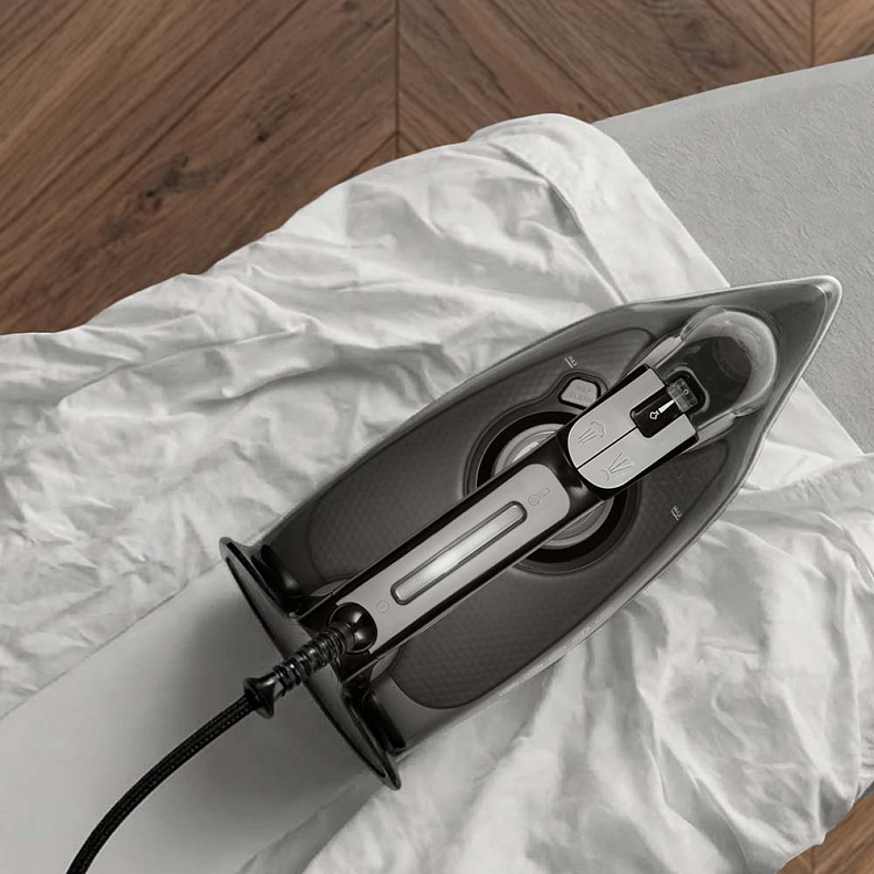 Подошва с увеличенной поверхностью охватывает большую площадь ткани за один проход. Это значит, что вы прогладите постельное белье и стопку одежды быстрее. Достаточно нескольких точных проходов утюгом для безупречного результата.