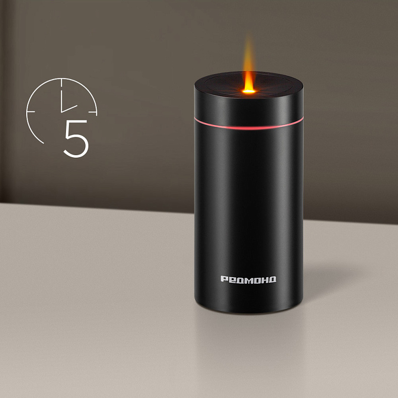 Мощность аккумулятора 2000 мА*ч — диффузор будет беспрерывно работать до 5 часов без подзарядки. Он компактный, и его удобно брать с собой.