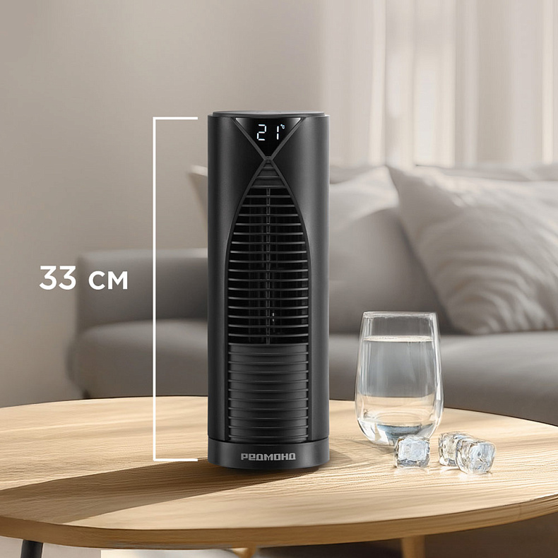 Компактный вентилятор высотой всего 33 см отлично подходит для охлаждения воздуха в рабочей зоне. Поставьте его на стол, тумбу или полку — и наслаждайтесь комфортными условиями даже в жару.