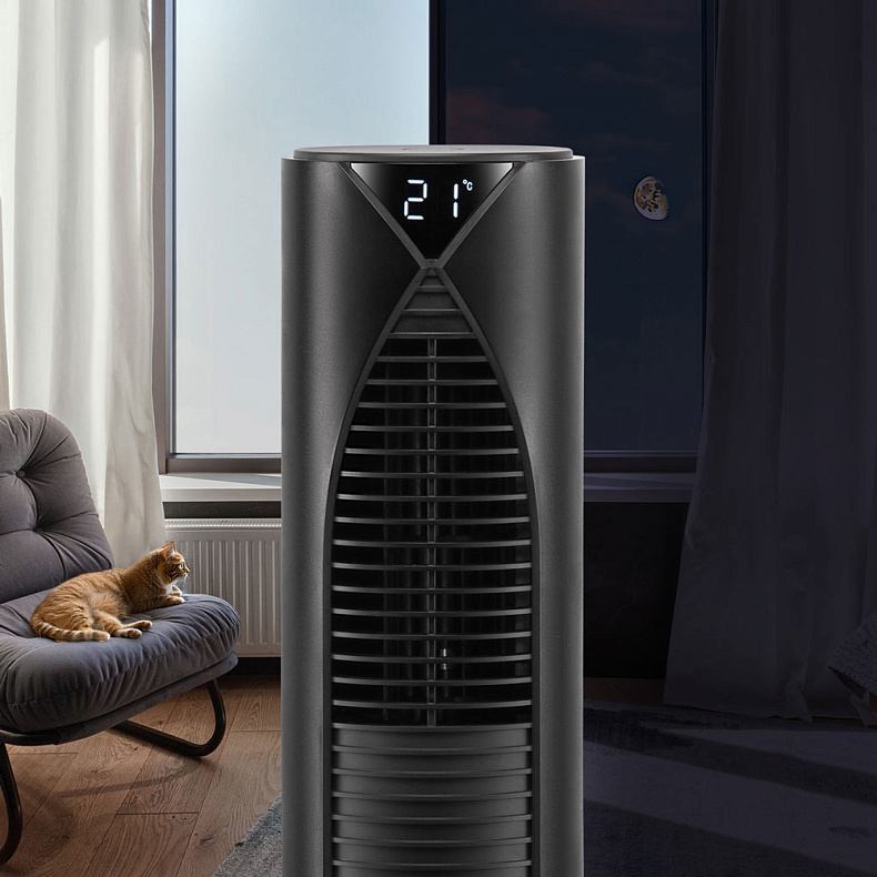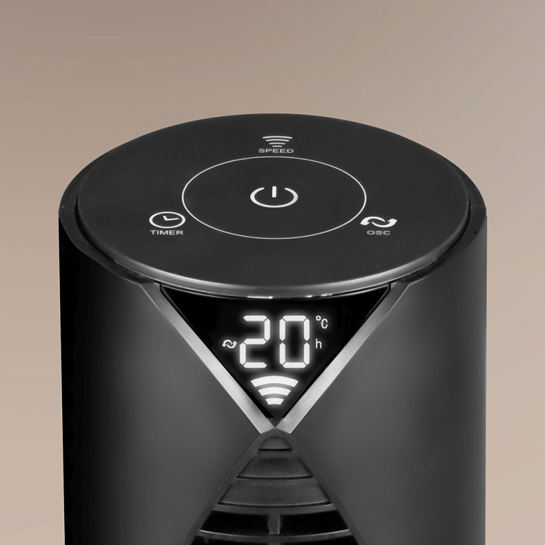 Встроенный датчик измеряет температуру воздуха в помещении, позволяя отслеживать изменения после включения вентилятора. Параметры отображаются на ярком светодиодном дисплее. А сенсорная панель легко реагирует на прикосновения — вы быстро установите нужные настройки.