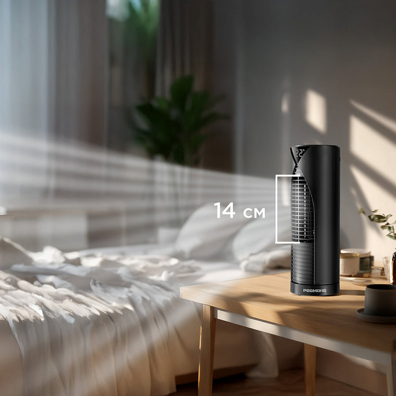 Благодаря мощному потоку воздуха и размеру воздуховода 14 см вентилятор эффективно охлаждает пространство на расстоянии до 6 метров. Необязательно ставить вентилятор слишком близко к себе, чтобы почувствовать прохладу.