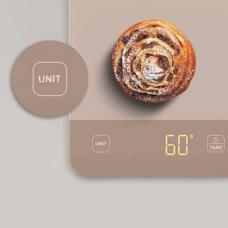 Переключайтесь между единицами измерения одним нажатием. Удобное решение для тех, кто готовит по рецептам из разных стран. На выбор доступны 4 единицы измерения: граммы, фунты, унции, миллилитры.